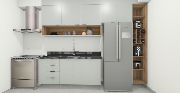 Cozinha planejada e em conceito aberto;