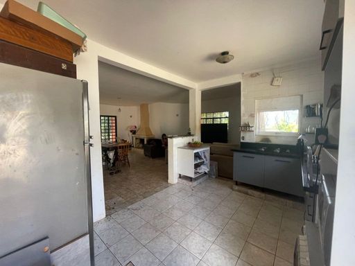 Casa conta com 4 dormitórios sendo 1 suíte, banheiro social, sala com lareira e cozinha integrada.